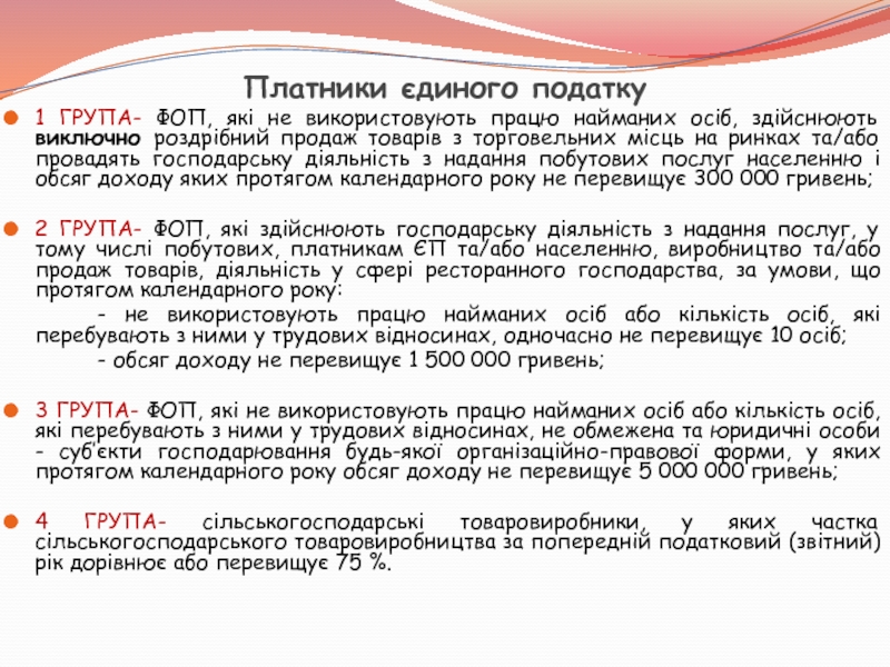 1 ГРУПА- ФОП, які не використовують працю найманих