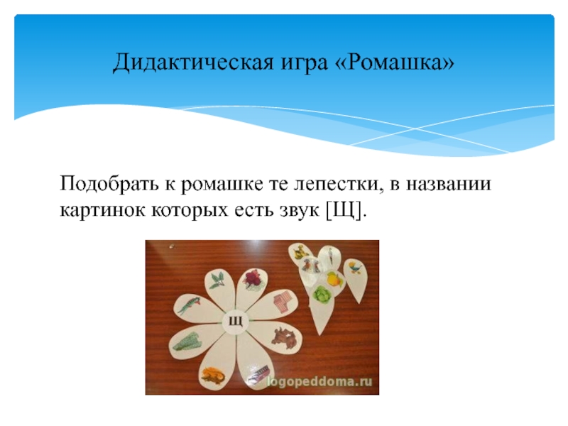 Слайд 48Подобрать к ромашке те лепестки, в названии картинок которых есть