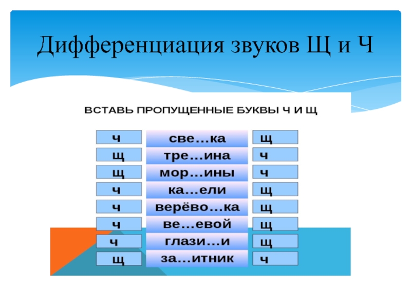 • Если правильно произносится звук ч, то протянув завершающий звук ч как фрикативный элемент можно получить звук щ.