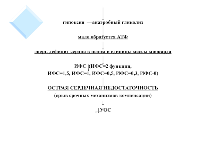 пластического обеспечения ( мембран, ферментов, Н-цепей) поступления О2, пит. в-в в клетку сердца+ конечных продуктов обмена + дисферментоз дистрофия мышечных волокон сердца УОС.