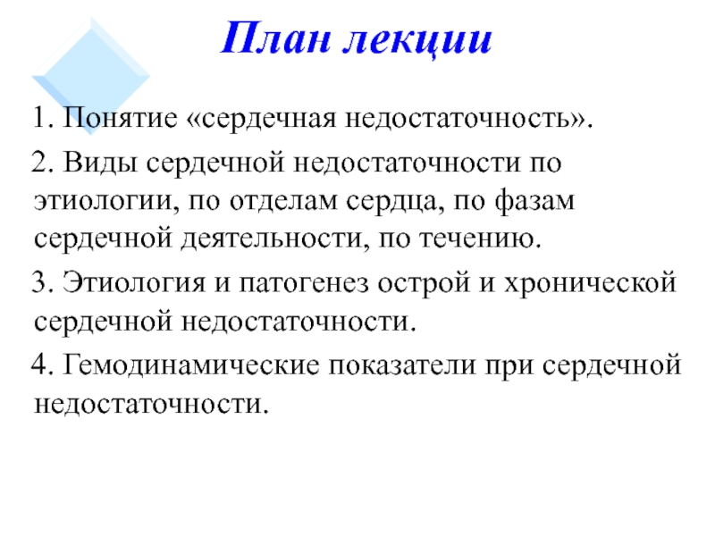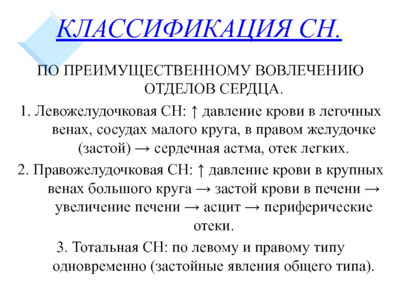 сердечной недостаточности по этиологии, по отделам сердца, по фазам сердечной