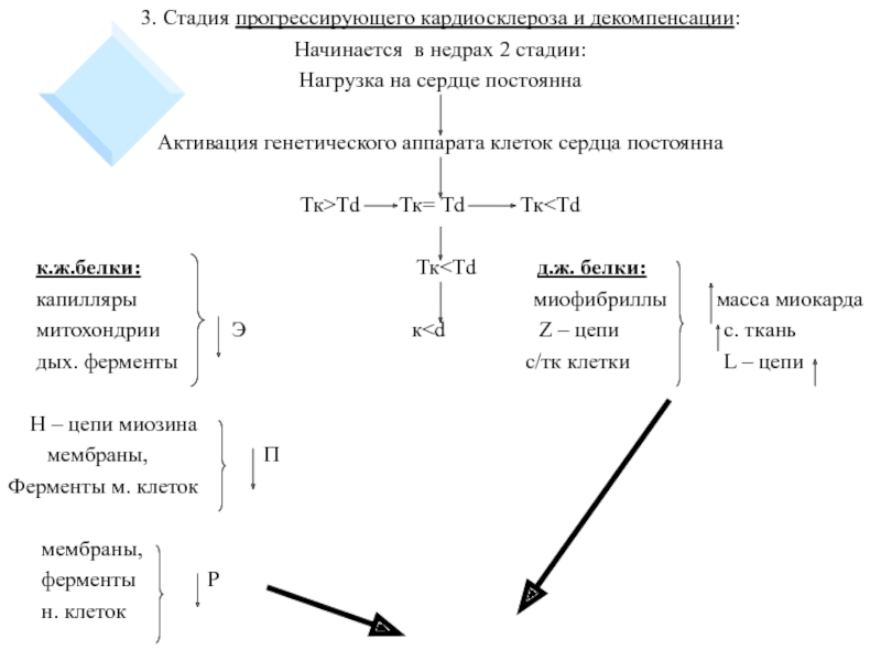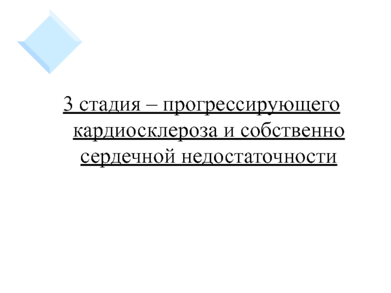 Слайд 373 стадия – прогрессирующего кардиосклероза и собственно сердечной недостаточности