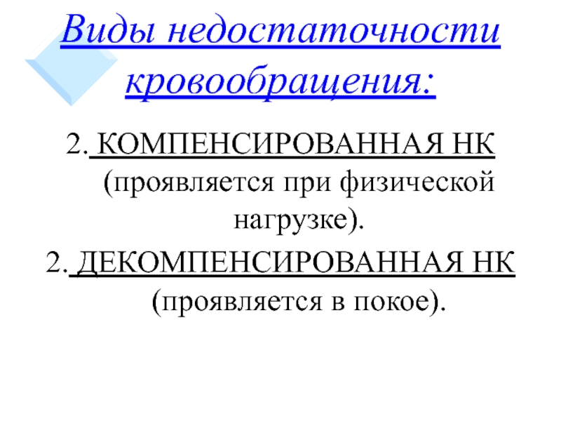 2. КОМПЕНСИРОВАННАЯ НК (проявляется при физической нагрузке).