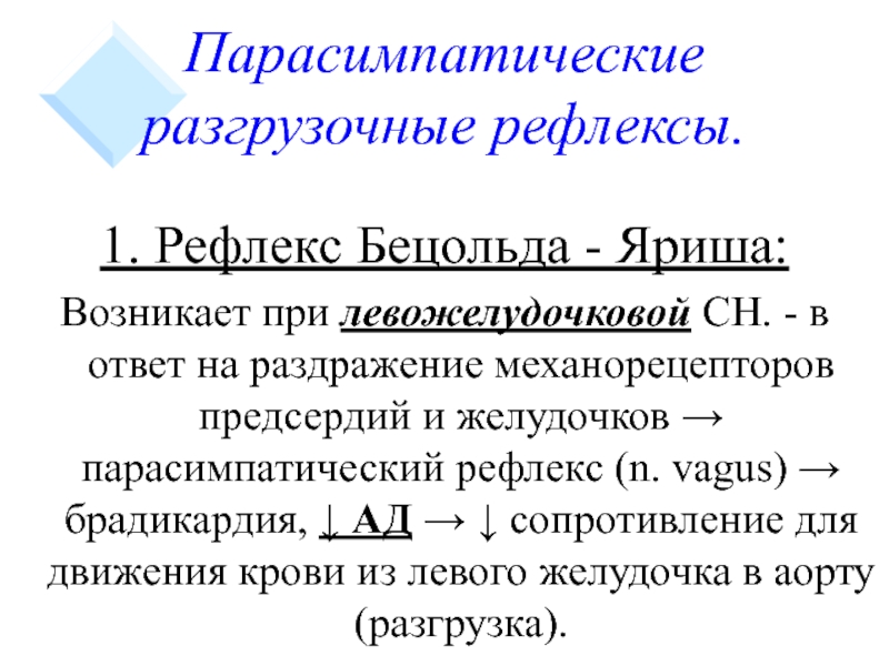 Слайд 24Парасимпатические разгрузочные рефлексы.
