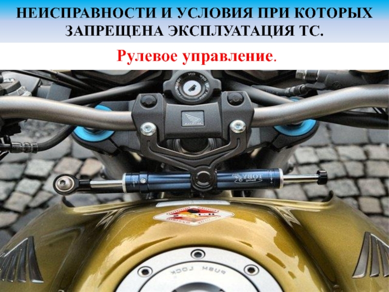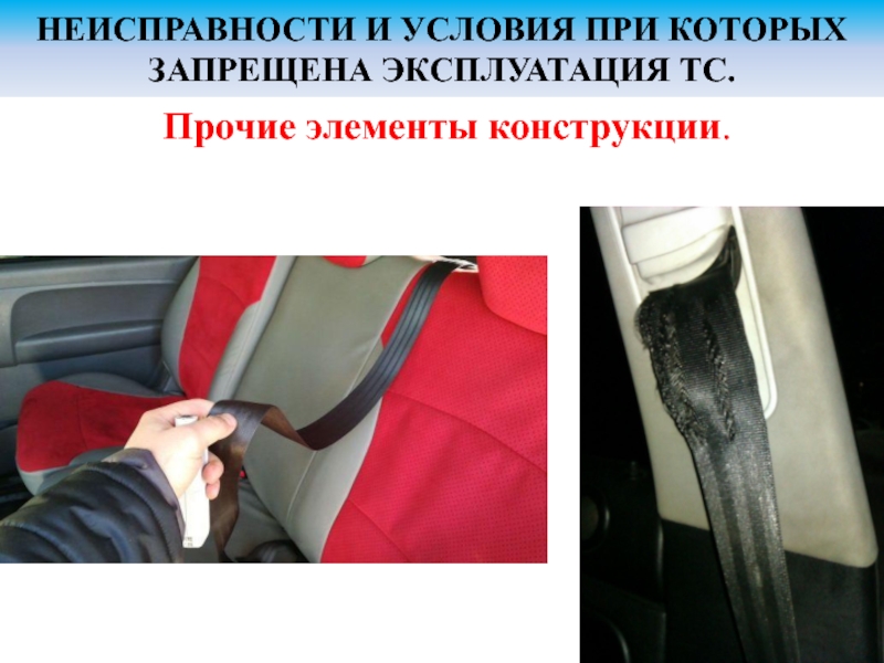 Слайд 1НЕИСПРАВНОСТИ И УСЛОВИЯ ПРИ КОТОРЫХ ЗАПРЕЩЕНА ЭКСПЛУАТАЦИЯ ТС.
