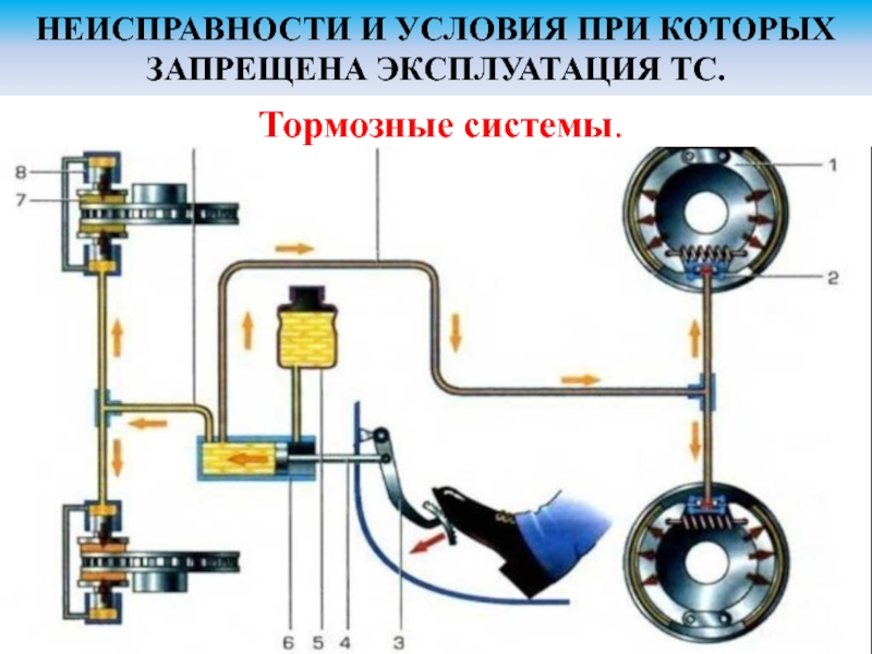 НЕИСПРАВНОСТИ И УСЛОВИЯ ПРИ КОТОРЫХ ЗАПРЕЩЕНА ЭКСПЛУАТАЦИЯ ТС. Тормозные системы.
