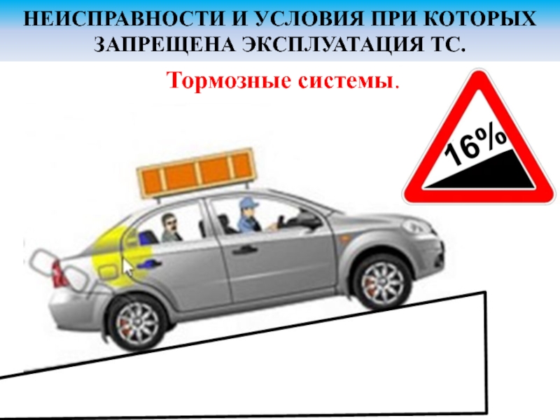 Слайд 16НЕИСПРАВНОСТИ И УСЛОВИЯ ПРИ КОТОРЫХ ЗАПРЕЩЕНА ЭКСПЛУАТАЦИЯ ТС.