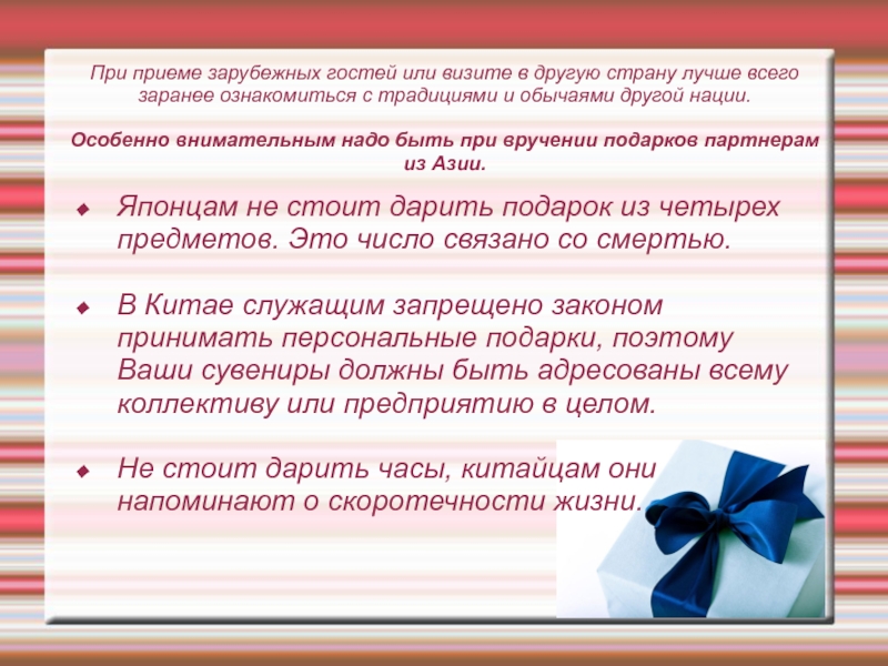 внимательным надо быть при вручении подарков партнерам из Азии.