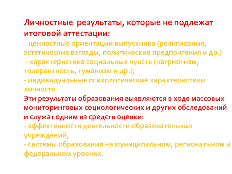 Слайд 10Личностные результаты, которые не подлежат итоговой аттестации: