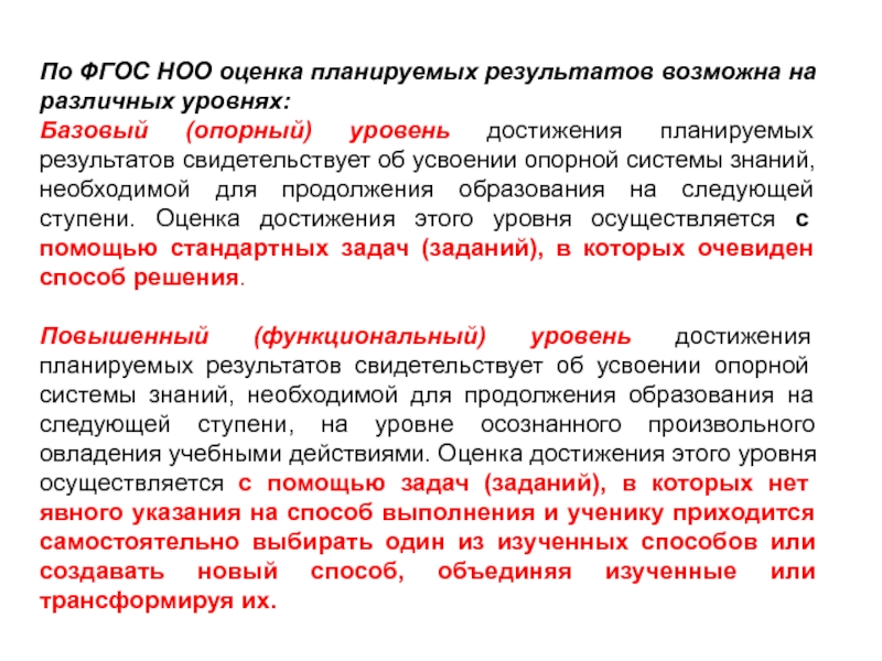Слайд 29По ФГОС НОО оценка планируемых результатов возможна на различных уровнях: