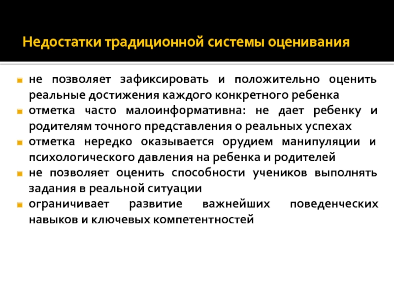 Слайд 15Недостатки традиционной системы оценивания
