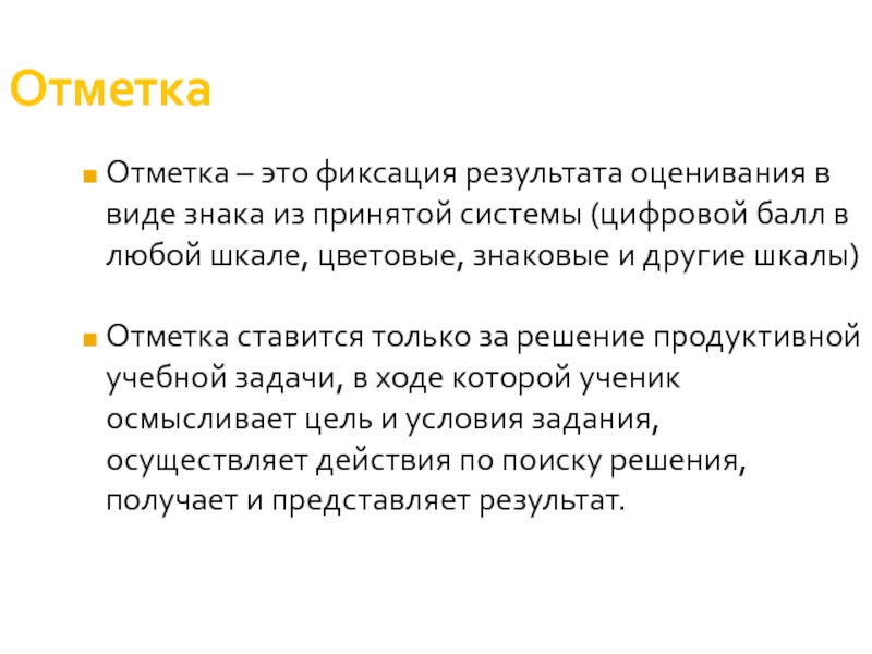 Отметка – это фиксация результата оценивания в виде знака из