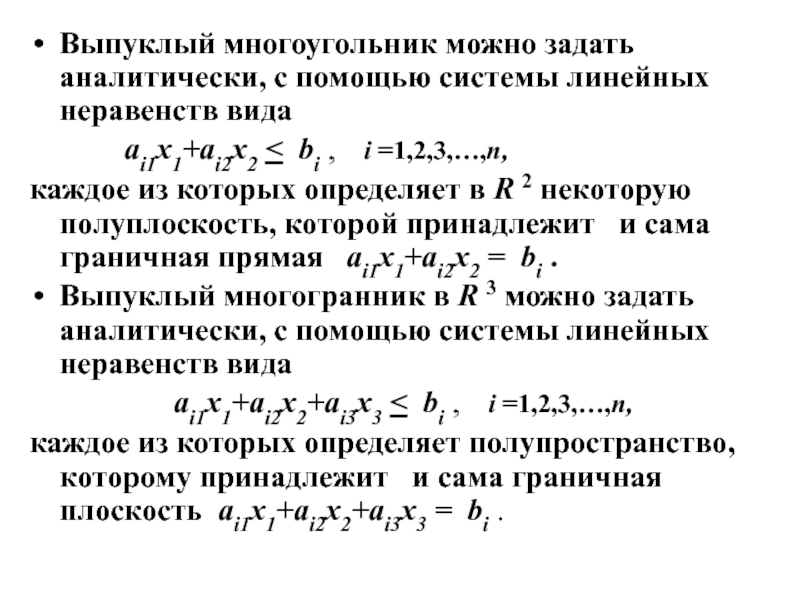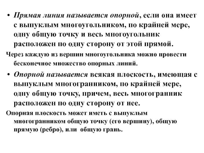 выпуклое множество невыпуклое множествоВыпуклый многоугольник расположен по одну сторону от каждой из прямых - его границ.