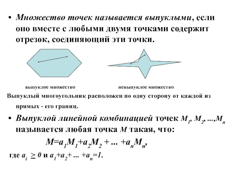 Выпуклой линейной комбинацией точек М1, М2, ...,Мn называется любая точка М такая, что:
