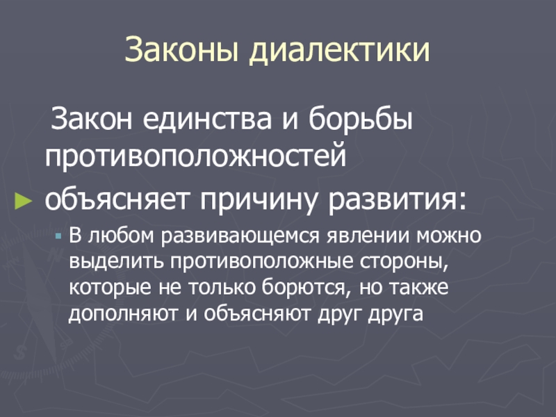 развивающемся явлении можно выделить противоположные стороны, которые не только борются,