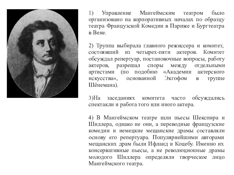 Слайд 661) Управление Мангеймским театром было организовано на корпоративных началах по