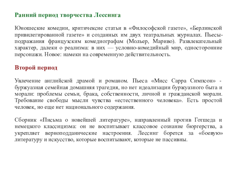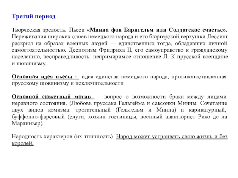 предромантизма). Создание социально-историчексой драмы, конфликт в которой носит политический характер. Сила человека не в разуме, а в чувстве!