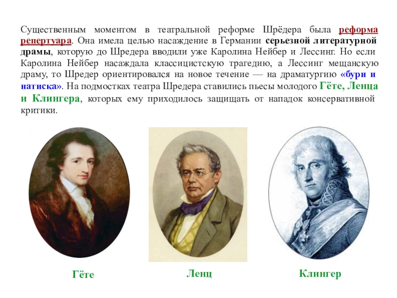 Шредер обратился к Шекспиру, которого и утвердил на немецкой сцене.