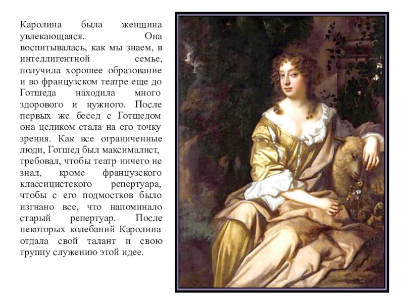 Слайд 12Каролина была женщина увлекающаяся. Она воспитывалась, как мы знаем, в