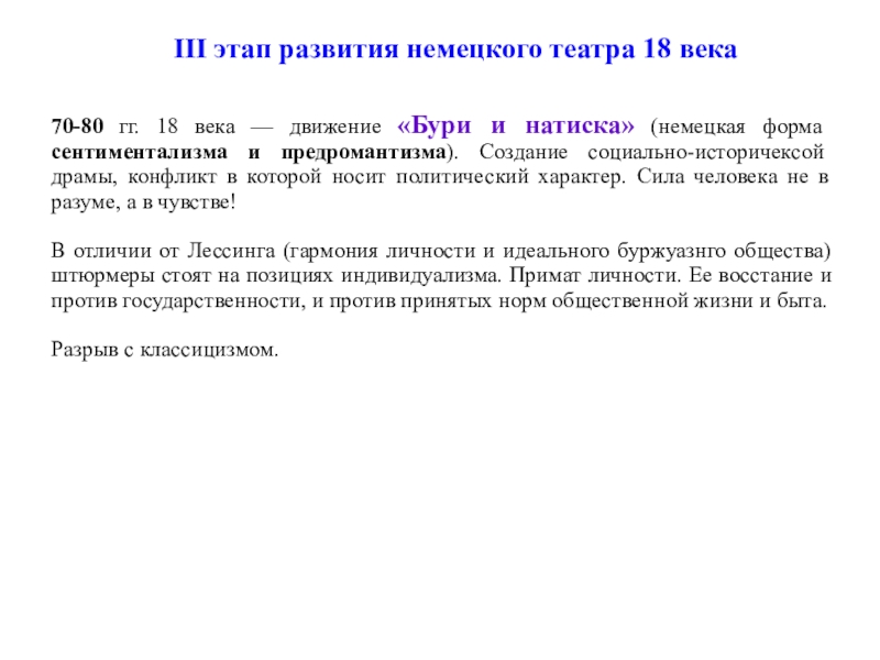Слайд 63III этап развития немецкого театра 18 века