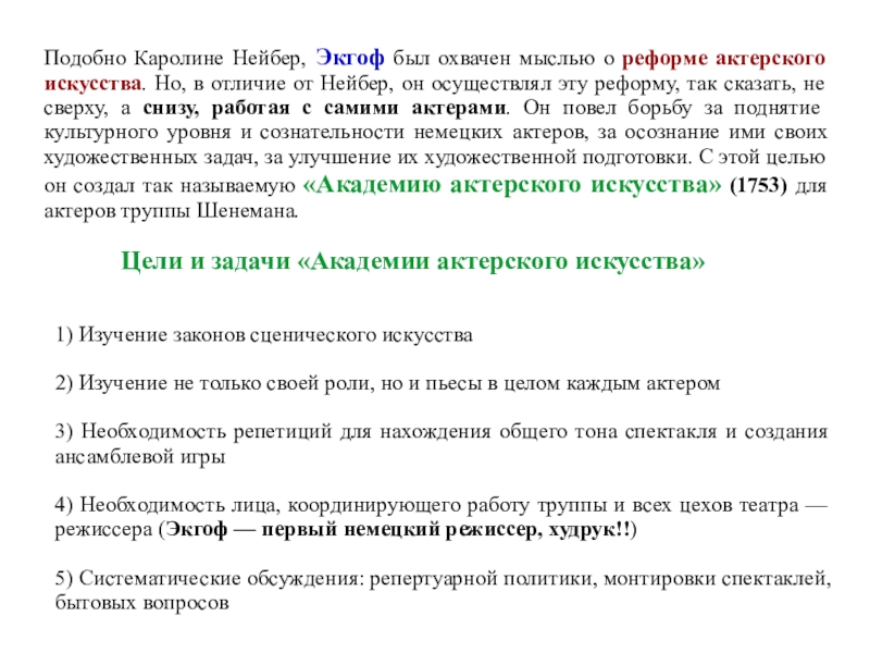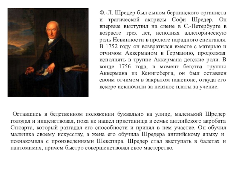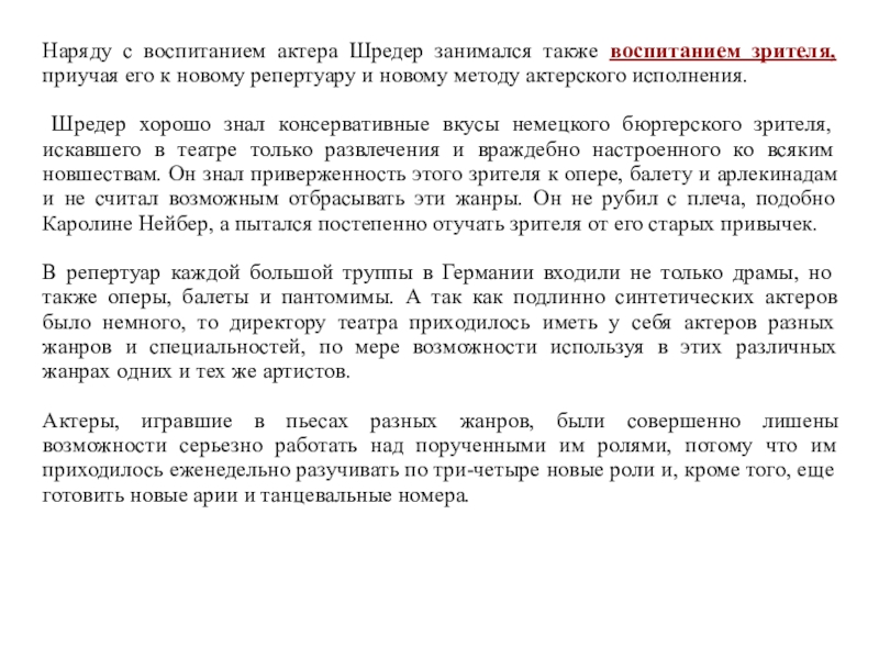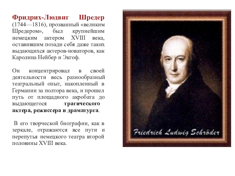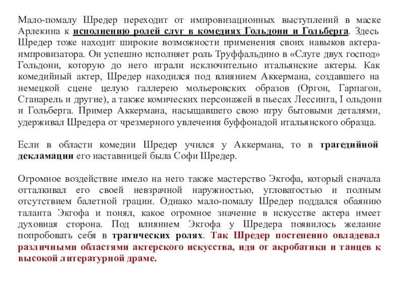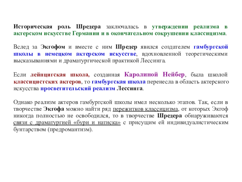 Слайд 61Историческая роль Шредера заключалась в утверждении реализма в актерском искусстве