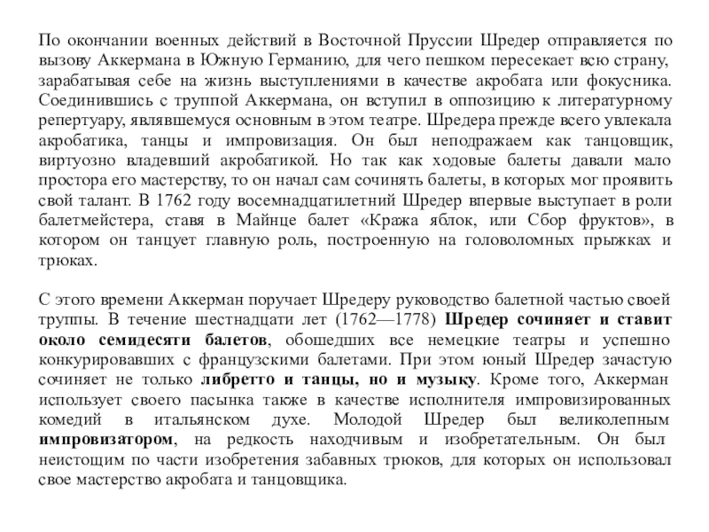 по разным городам Германии, то сам Шредер вступил в труппу