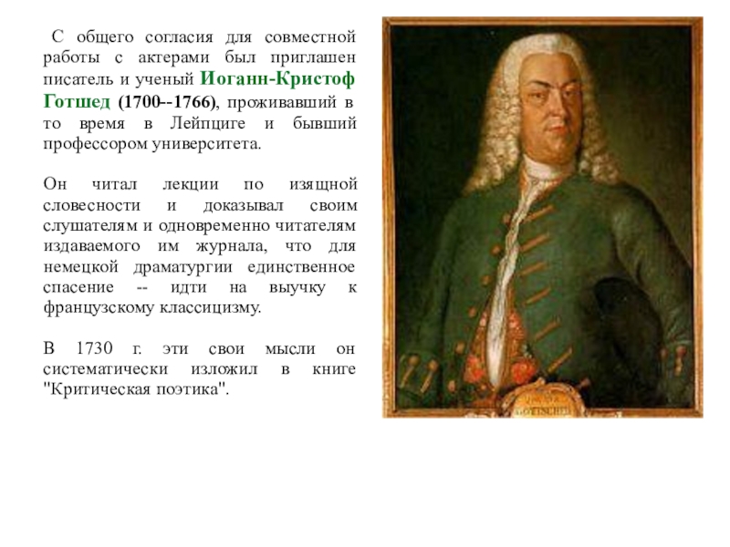 Слайд 11 Готшед, который стал одним из главных провозвестников галломании в