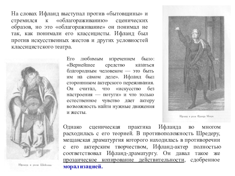 Слайд 68На словах Ифланд выступал против «бытовщины» и стремился к «облагораживанию»