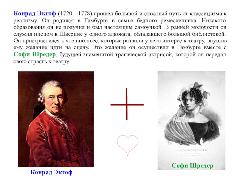 Однако реализм актеров гамбургской школы имел несколько этапов. Так, если в творчестве Экгофа можно найти ряд пережитков классицизма, от которых Экгоф никогда полностью не освободился, то в творчестве Шредера обнаруживаются связи с драматургией «бури и натиска» с присущим ей индивидуалистическим бунтарством (предромантизм).
