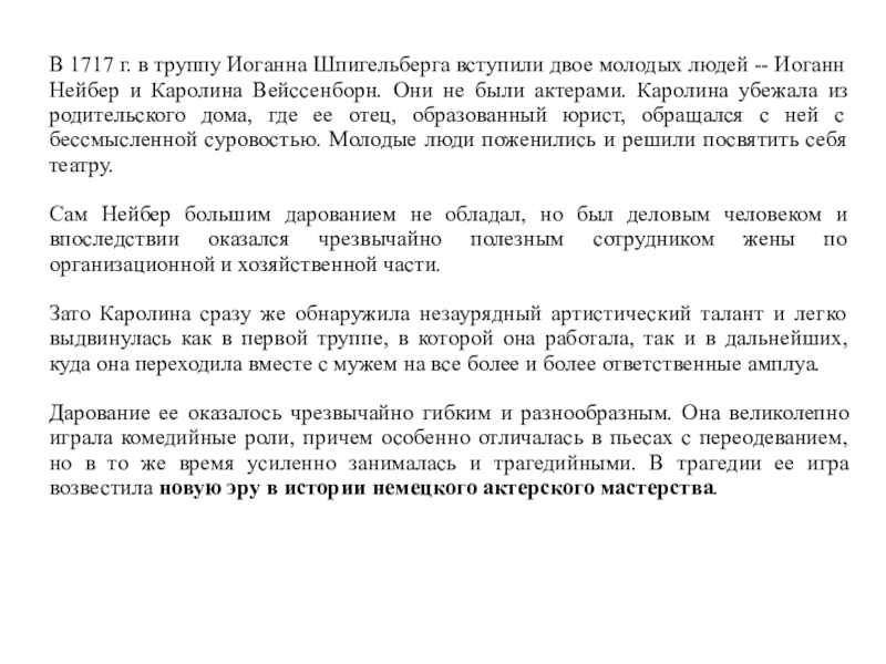 Слайд 7В 1717 г. в труппу Иоганна Шпигельберга вступили двое молодых