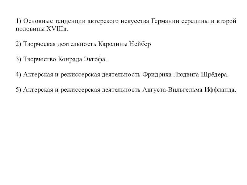 Слайд 21) Основные тенденции актерского искусства Германии середины и второй половины