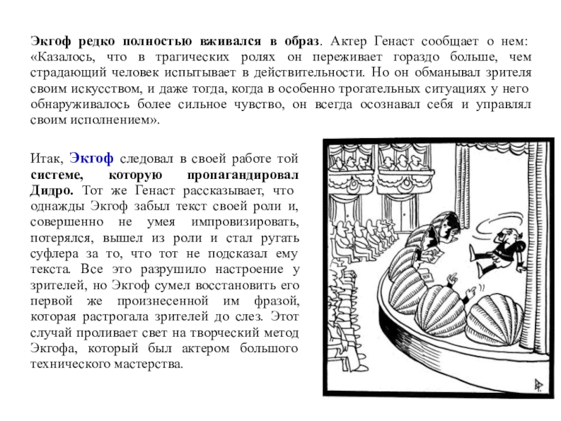 Слайд 62Как актеру, Шредеру был присущ метод реалистической индивидуализации образа, которая