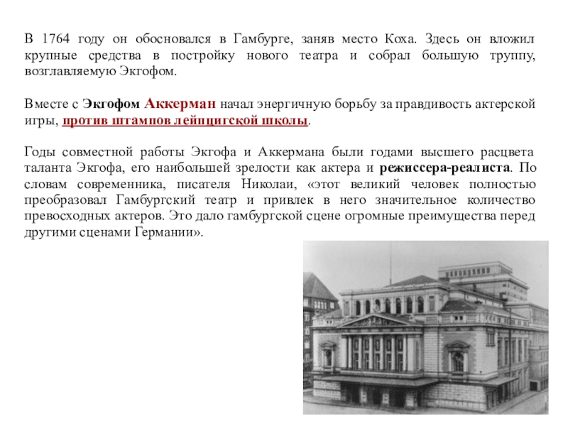 Слайд 3Немецкий театр в XVIII веке внес большой вклад в мировую