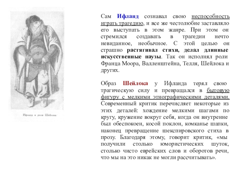 Слайд 71Сам Ифланд сознавал свою неспособность играть трагедию, и все же