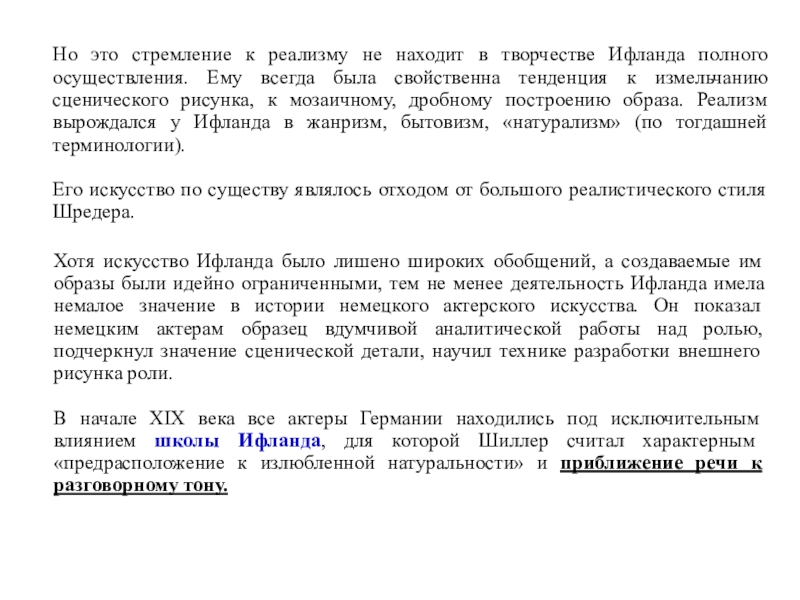 понимали его классицисты. Ифланд был против искусственных жестов и других условностей классицистского театра.