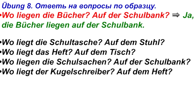 Wo liegt die Schultasche? Auf dem Stuhl?