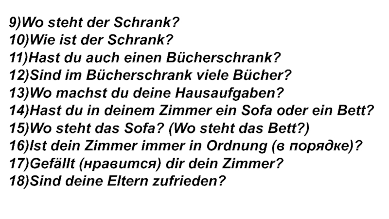 Слайд 20 Rechts an der Wand steht ein Schrank. Der Schrank ist