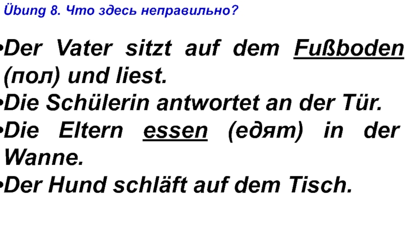 Слайд 22Übung 9. Допиши, где кто и что находится.