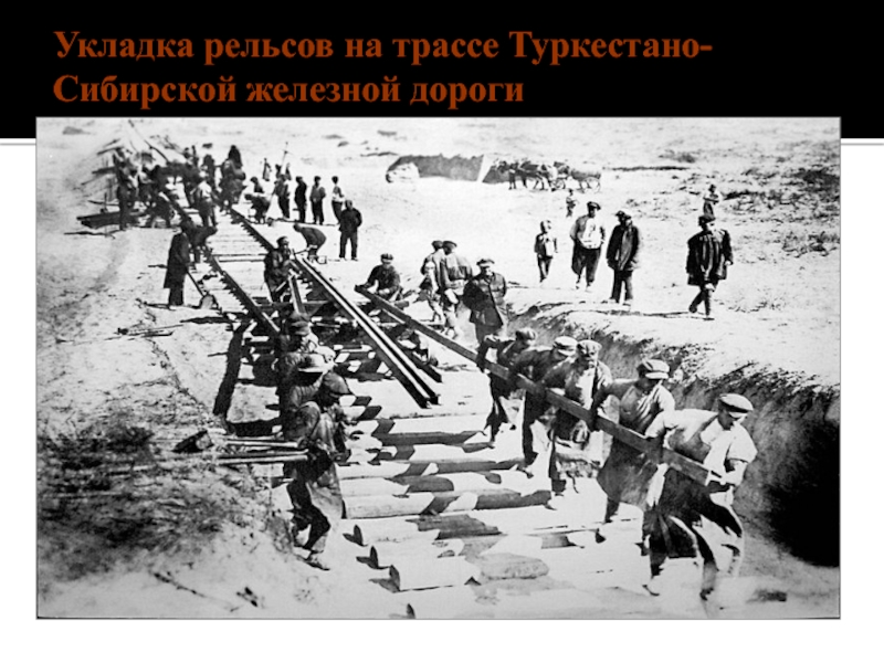 Слайд 5Крупная стройка индустриализации – Туркестано-Сибирская железнодорожная магистраль.