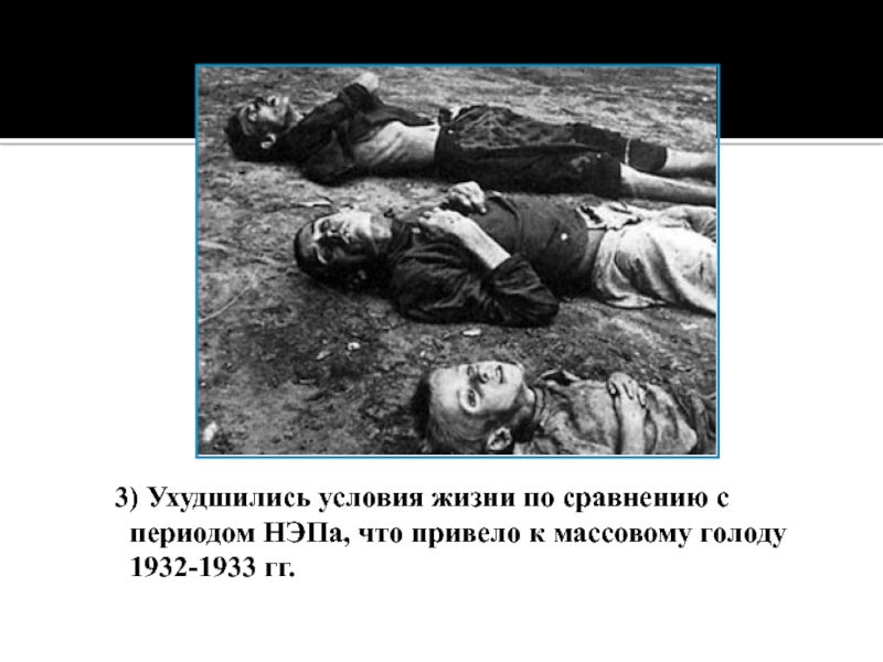 Слайд 45 3) Ухудшились условия жизни по сравнению с периодом НЭПа, что