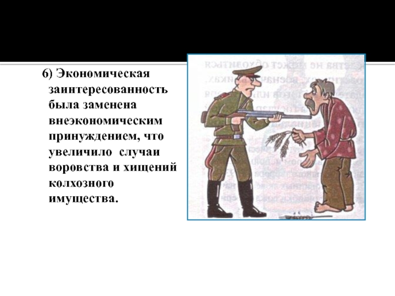 Слайд 48 6) Экономическая заинтересованность была заменена внеэкономическим принуждением, что увеличило случаи