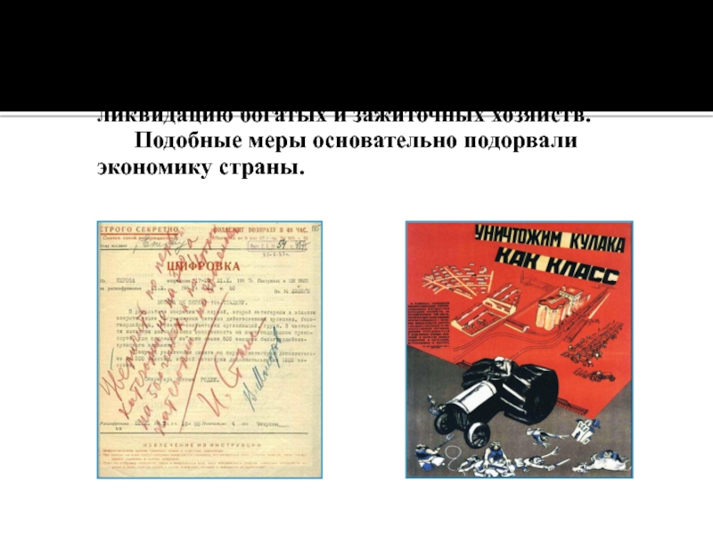 Слайд 30 Принято постановление Политбюро ЦК ВКП (б) «О мероприятиях по ликвидации