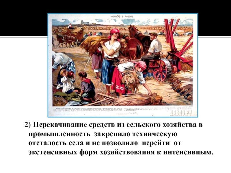 Слайд 44 2) Перекачивание средств из сельского хозяйства в промышленность закрепило техническую