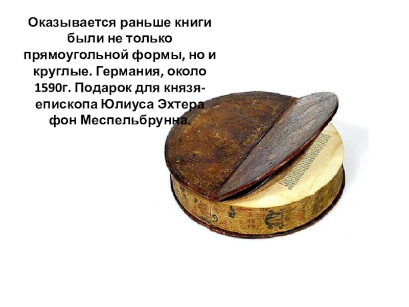 Слайд 5Оказывается раньше книги были не только прямоугольной формы, но и