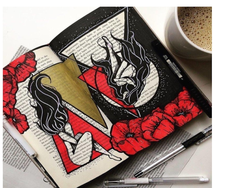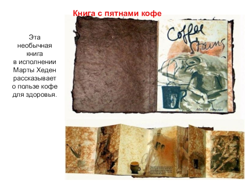 Слайд 25Книга с пятнами кофе