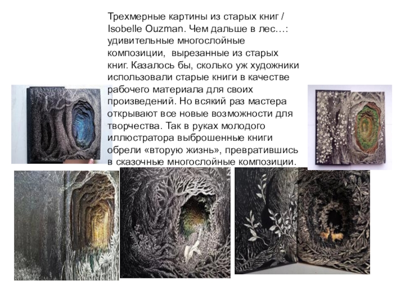 Слайд 36Трехмерные картины из старых книг / Isobelle Ouzman. Чем дальше