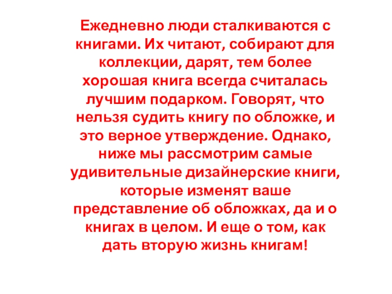 Слайд 2Ежедневно люди сталкиваются с книгами. Их читают, собирают для коллекции,