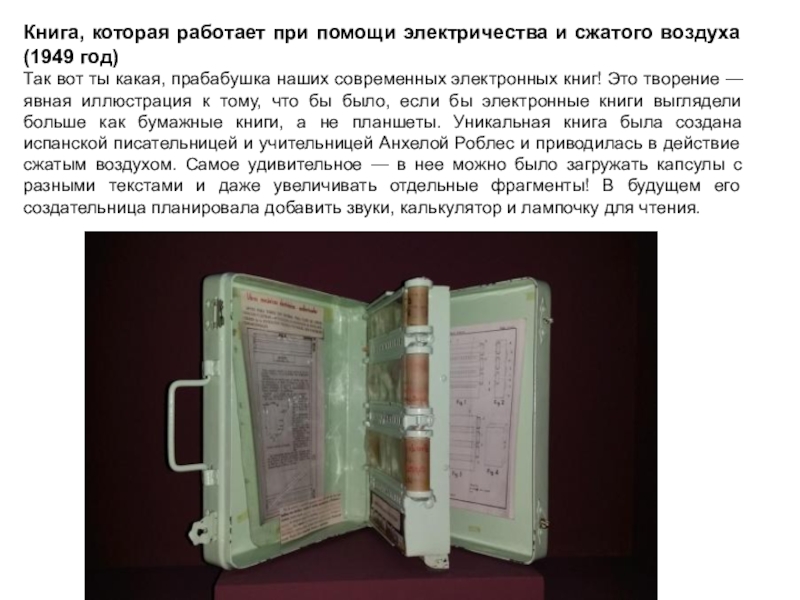 Слайд 6Книга, которая работает при помощи электричества и сжатого воздуха (1949
