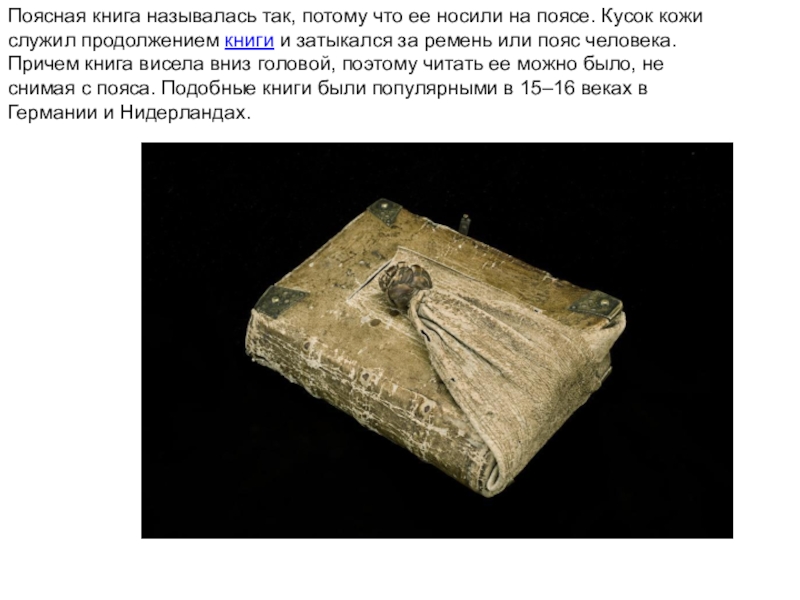 Слайд 4Поясная книга называлась так, потому что ее носили на поясе.