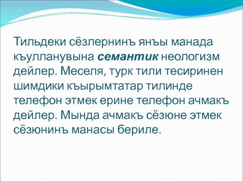 вастасынен янъы япылгъан сёзлер олалар;б) башкъа тильден кирген, амма даа умумхалкъ тилине синъип, фааль къулланылгъан сёзлерге кечмеген янъы сёзлер олалар: провайдер, дизайнер киби.